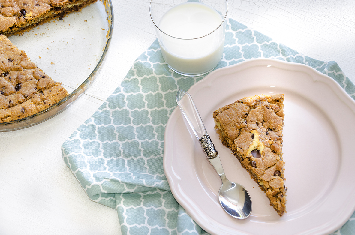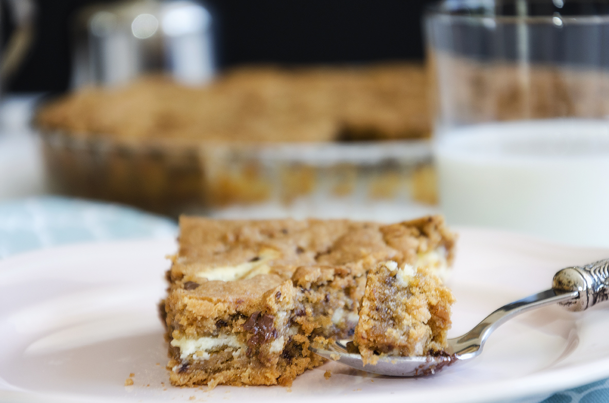 Quem quer uma sobremesa "de comer e chorar por mais" para o fim-de-semana? No dia 4 de dezembro celebra-se o Dia do Cookie (dia do biscoito/bolacha - em português). Já aqui partilhei uma receita de bolo de bolacha, mas esta é mais original, a massa de cookie é feita por nós. Além de que também prefiro o sabor deste cookie cremoso.